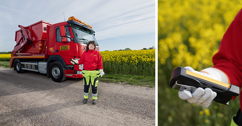 ”Det är ett jättebra jobb oavsett vilket kön du har. En arbetsdag är varierad och du får göra allt från att prata med kunder och kollegor till att köra containrar mellan olika platser. Många tror att det är ett fysiskt ansträngande jobb, men det är det oftast inte. Däremot behöver du vara duktig på att ta egna initiativ – till exempel genom att fråga kunden vart containern ska placeras”.
