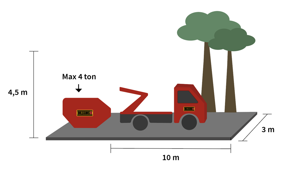 • Kunden ansvarar även för att vägen har en fri höjd på minst 4,5 meter och en fri yta på 10 meter framför platsen där containern placeras.