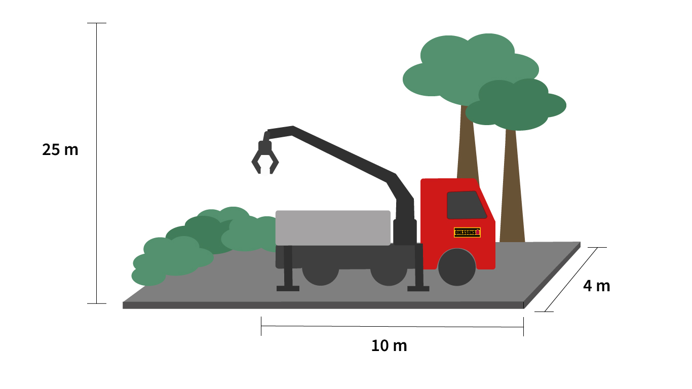 I priset ingår det att kranbilen skopar upp avfallet under max en timmes tid. Avfallet får uppgå till max 15 kubik och måste vara uppsamlat på en och samma plats. Önskar du kranbilens hjälp längre tid ber vi dig att höra av dig till oss för ett anpassat upplägg utanför denna webbshop.